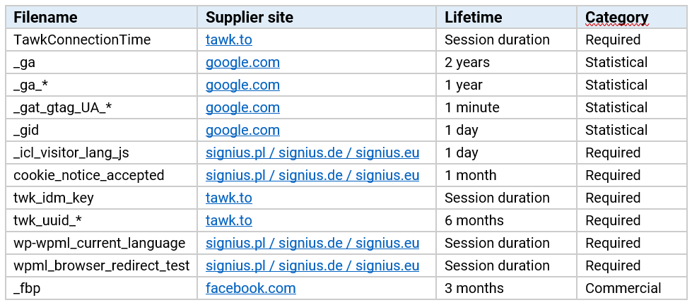 - In order to ensure the greatest possible comfort of using our website, when browsing it, small files are saved on your device, so-called cookie. They can only be read by the information and communication system that stored them; they allow you to be subsequently identified if you use the same service again, and they allow us to tailor the nature of the service provided to your expectations by displaying the page in the most appropriate manner for a particular user. We also use other technologies similar to cookies that allow you to access information stored on your device or browser (e.g., through Local Storage accessing information stored while using the SIGNIUS Platform in a dedicated part of your browser’s memory). Cookies and other technologies support the provision of electronic services to you and the improvement of the quality of these services. They allow us to collect statistical data and to identify your device so that we can develop the site according to the preferences of our users.