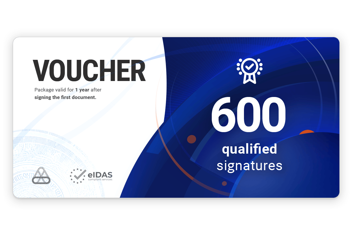 The signature package is sold in VOUCHER form to be used on the SIGNIUS platform. Each VOUCHER has a form of a one-time activation code, which you will receive with activation instructions immediately after purchase.